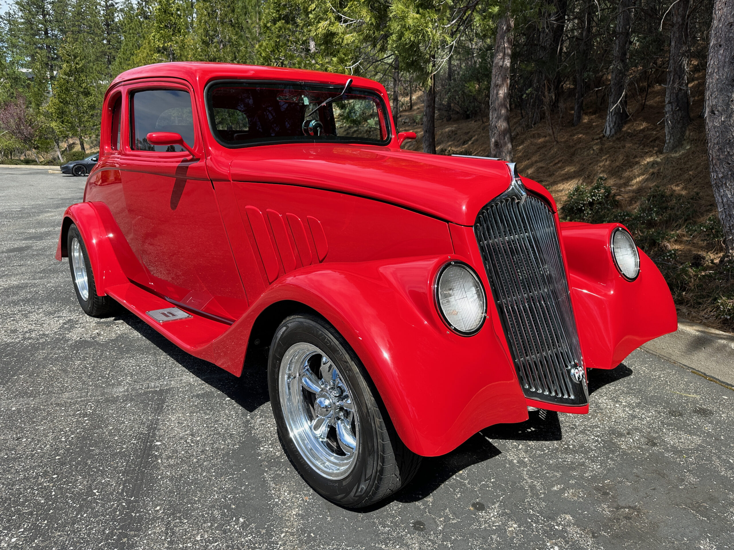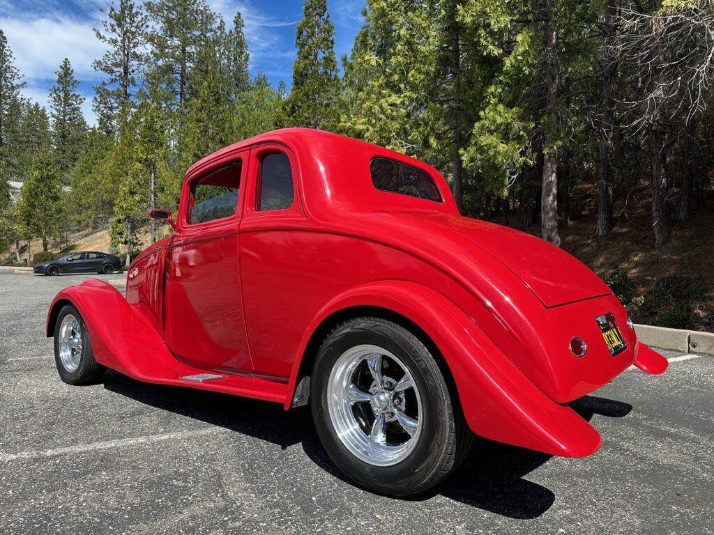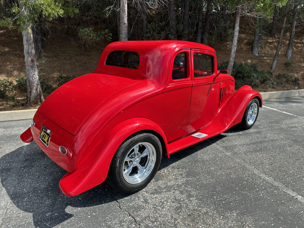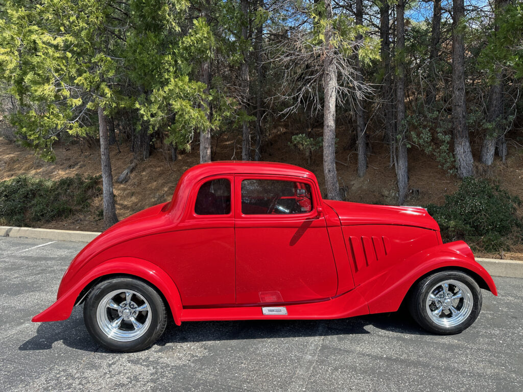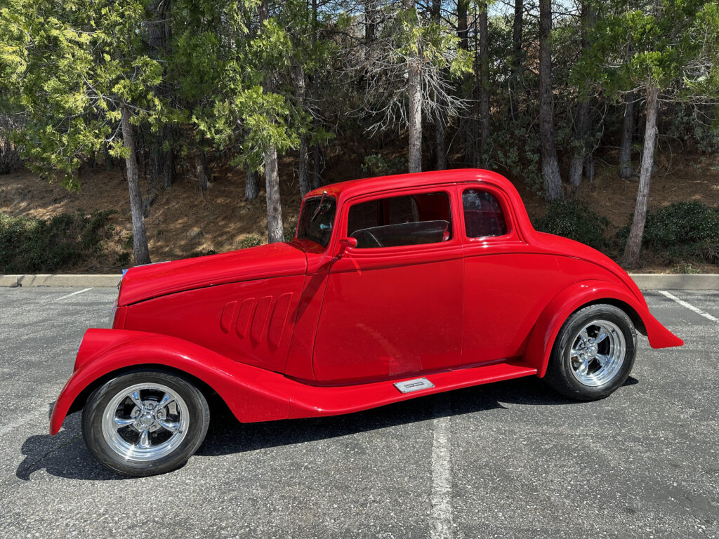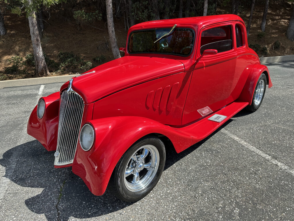 1933 Willys 5 window coupe. Fiberglass. low miles since completion. Chevy 350 motor with Moon intake and downdraft carburetors. Fully updated and reinforced frame. Headers/ dual exhaust with electronic baffles. 4 wheel Wilwood Disc brakes. Tilt Column. American Racing wheels. Chassis Works 9″ rear 4 link rear suspension. Coil overs on all 4 corners. Tubular Control arms up front with Rack and Pinion steering. Vintage Air conditioning.